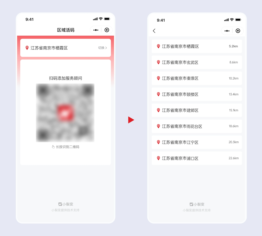 比如,客户在南京玄武区扫码(线上海报、朋友圈广告、社群转发都能用),系统自动识别位置,给客户匹配玄武区专属群/员工企微二维码,避免客户进入总部大群、其他区域群。