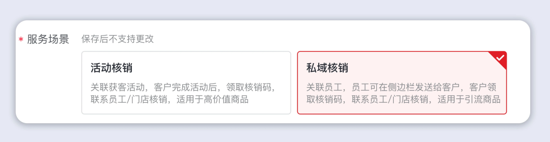 核销码支持选择私域核销和活动核销两类服务场景,精准匹配不同门店运营需求。
