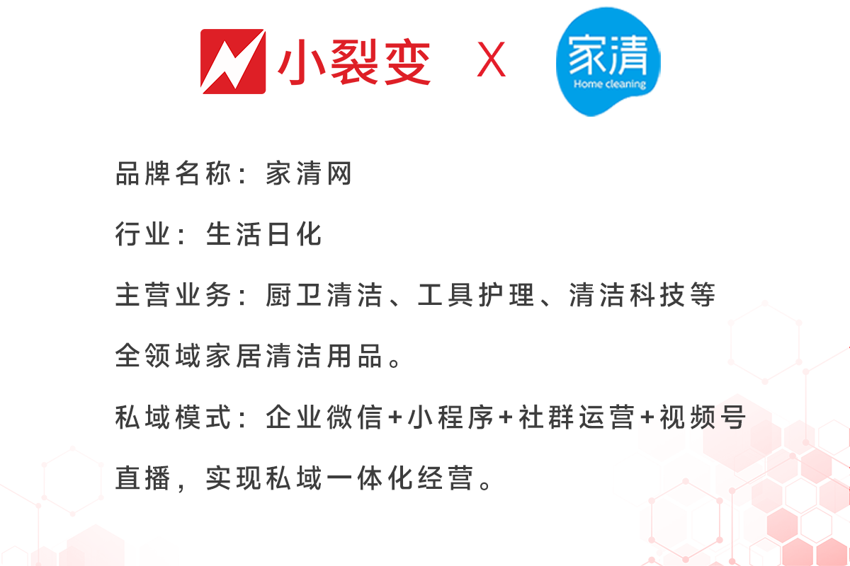 小裂变服务品牌——家清网,主营厨卫清洁、工具护理、清洁科技等全领域家居清洁用品,2021年起开始通过私域运营探索线上销售渠道,目前企业微信已沉淀200万+用户,截止2022年6月,私域已完成销售转化1.6亿。