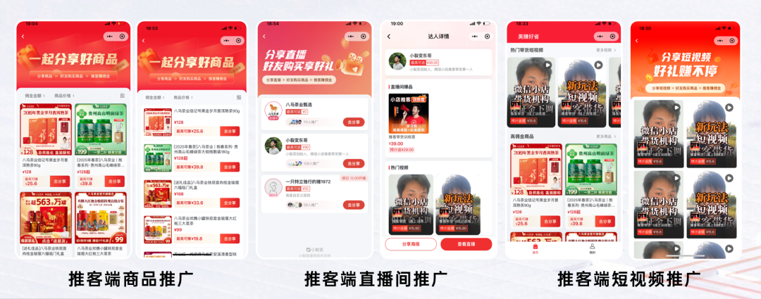 淘宝客、私域团长、MCN机构等,公私域流量获取能力+选品带货能力+微信小店推客带货玩法,可实现1+1+1>3的效果,快速起量,实现更高效流量、销量增长。